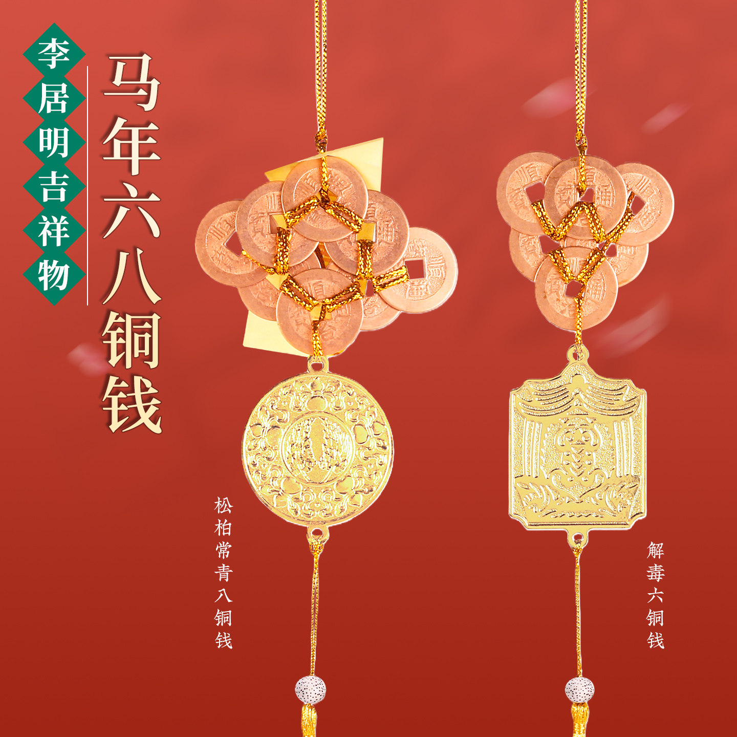 现货李居明2026六八铜钱吉祥物马年解毒六铜钱松柏长青八铜钱挂件