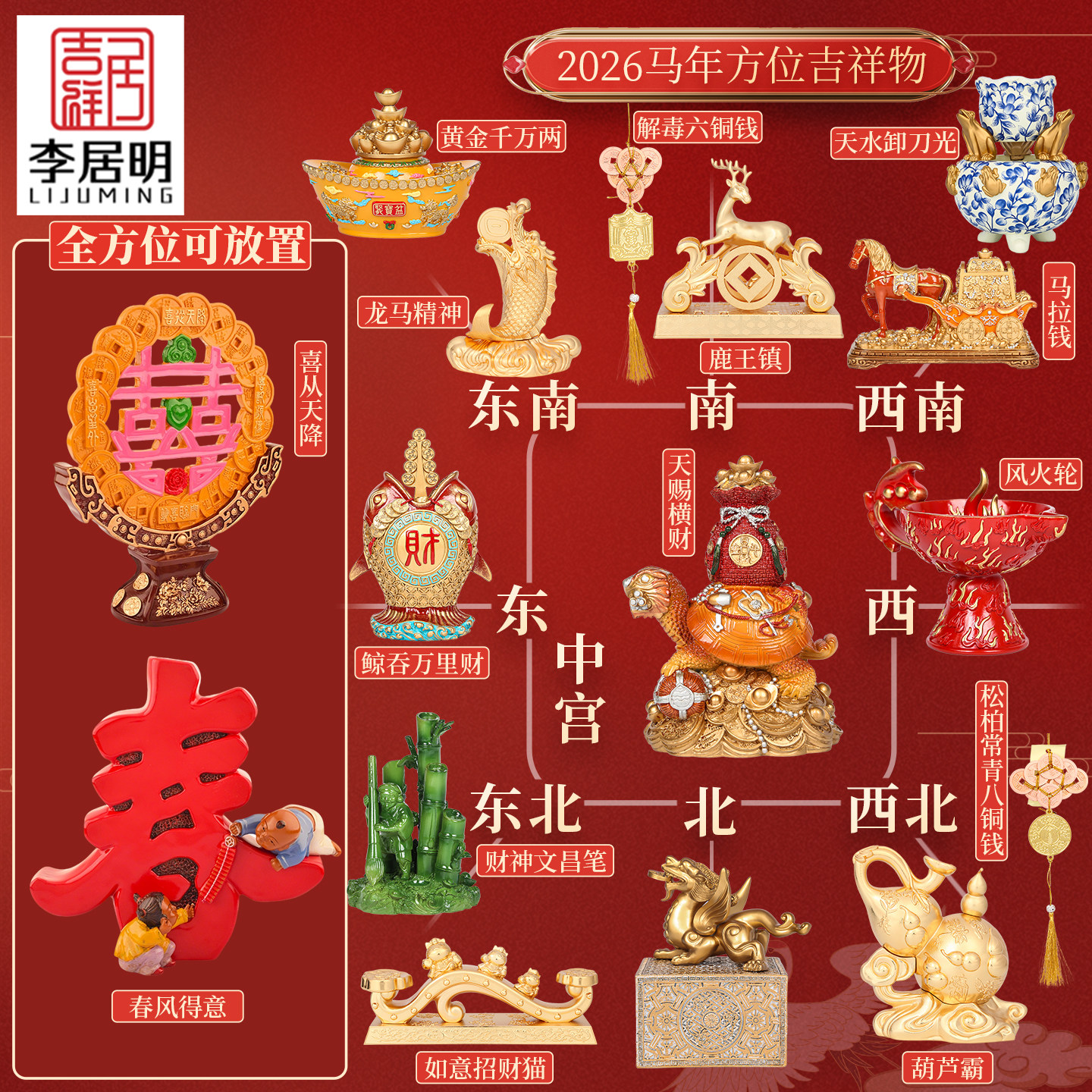 李居明2026马年九宫方位吉祥物马拉钱天赐横财葫芦霸鹿王镇风火轮