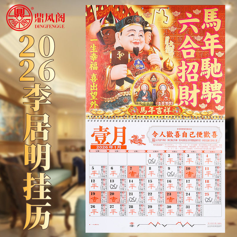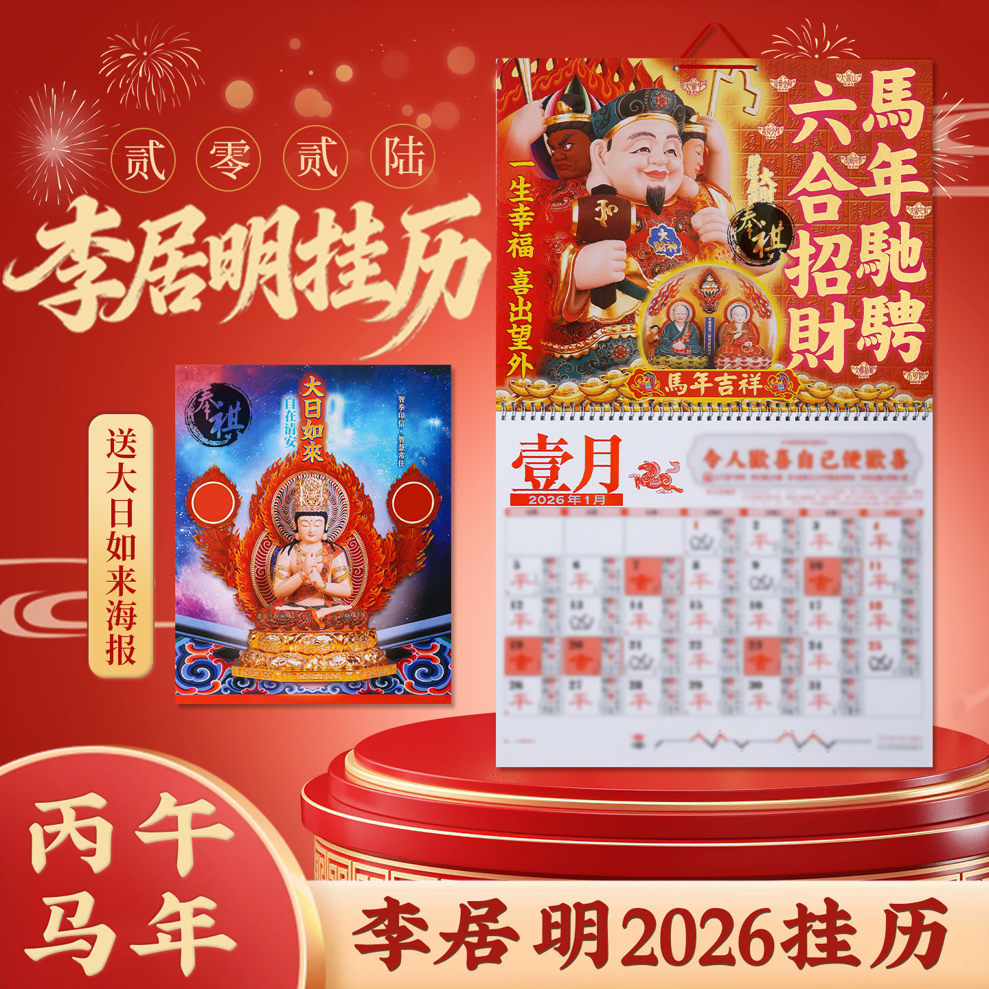 现货正版李居明2026挂历李居明2026年日历李居明2026马年家用月历