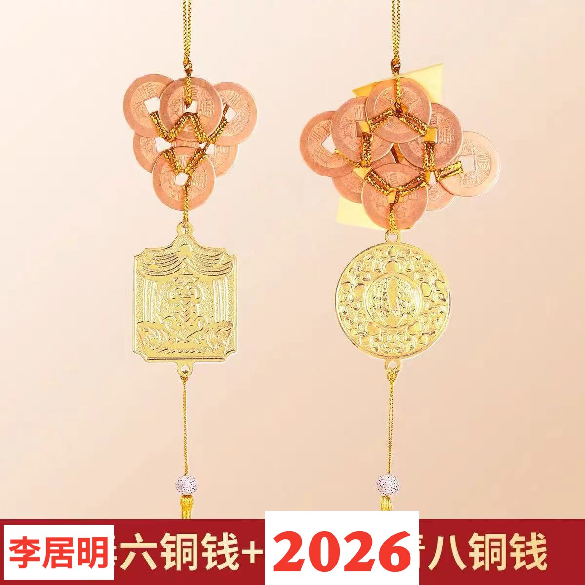 李居明铜钱2026年吉祥物六铜钱八铜钱挂件马年吉祥物五黄二黑吉祥