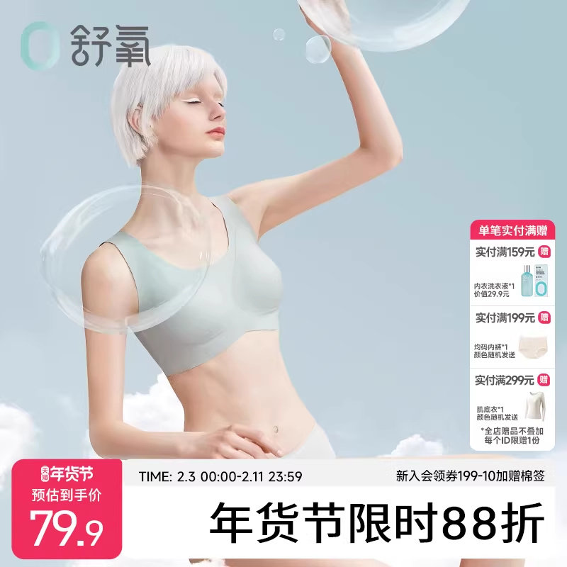 舒氧无痕内衣女士透气无钢圈薄款大码背心式文胸大胸显小运动胸罩
