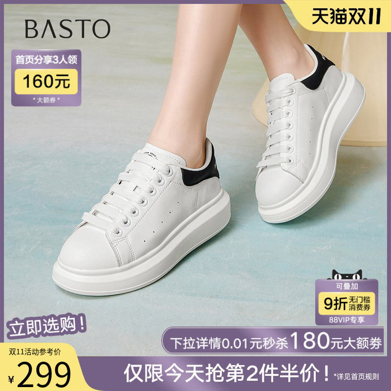 百思图2025秋季新款百搭厚底松糕小白鞋运动板鞋女休闲鞋W0803CM5