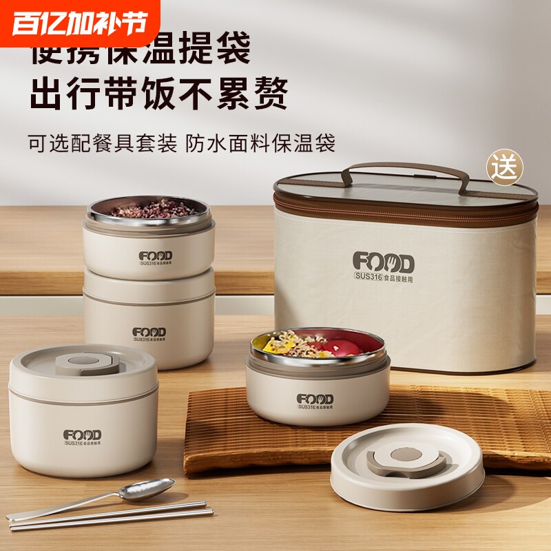 316L保温饭盒上班族便携早餐碗带盖迷你饭菜神器可微波炉加热便当