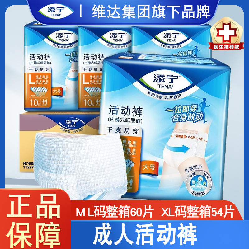 TENA添宁干爽易穿老人活动裤失禁拉拉裤内裤型成人超薄纸尿裤L/XL