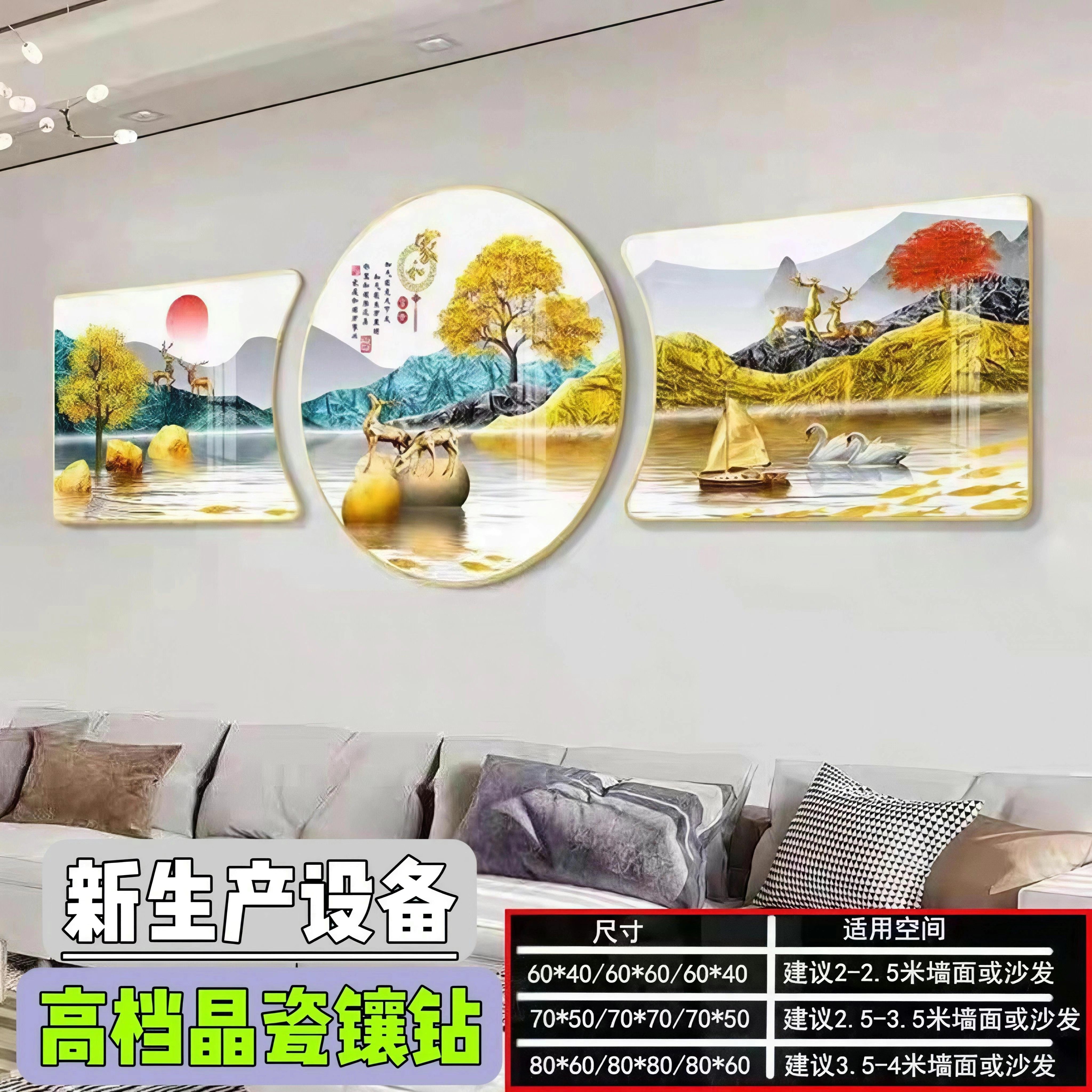 现代简约客厅装饰画沙发背景墙挂画新款大气壁画三联画轻奢晶瓷画