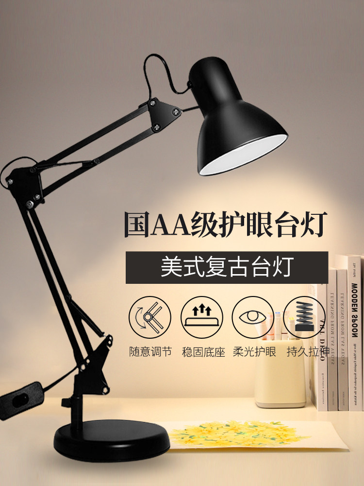 美式长臂LED台灯学习专用护眼绘图插电式折叠伸缩美甲纹绣补光灯