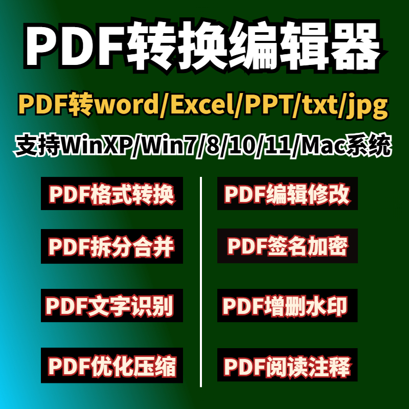 PDF编辑器PDF转Word软件 修改拆分合并压缩加密阅读 图片转换PDF