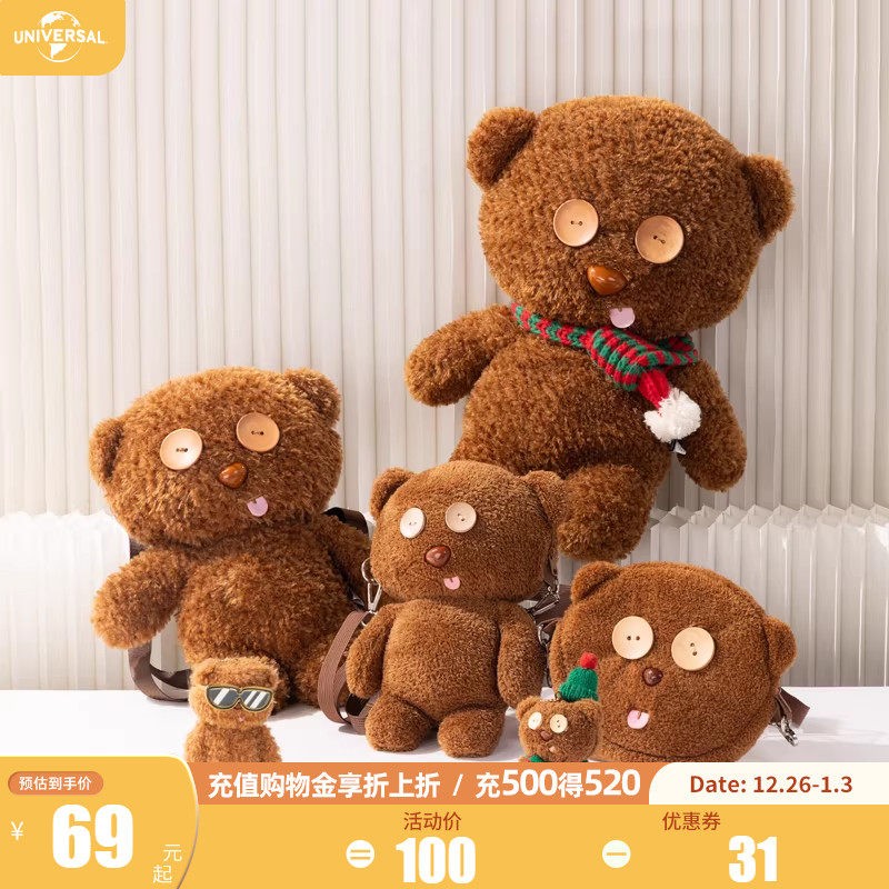 环球影业小黄人毛绒公仔TIM熊系列巨型玩偶毛绒潮流小挎包双肩包