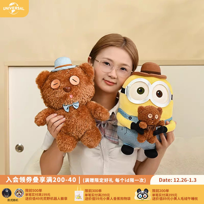 环球影业小黄人绅士鲍勃TIM熊毛绒公仔萌趣卡通玩偶抱枕生日礼物