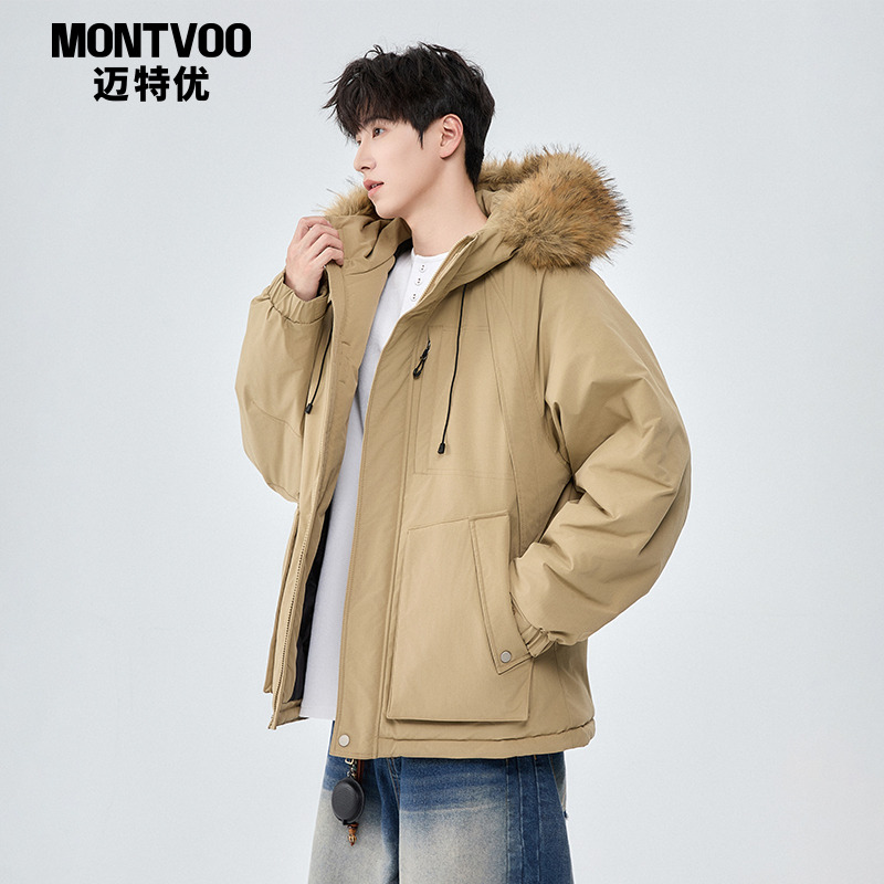 迈特优大毛领连帽棉衣男冬季2025新款工装派克棉服重工加厚防寒服