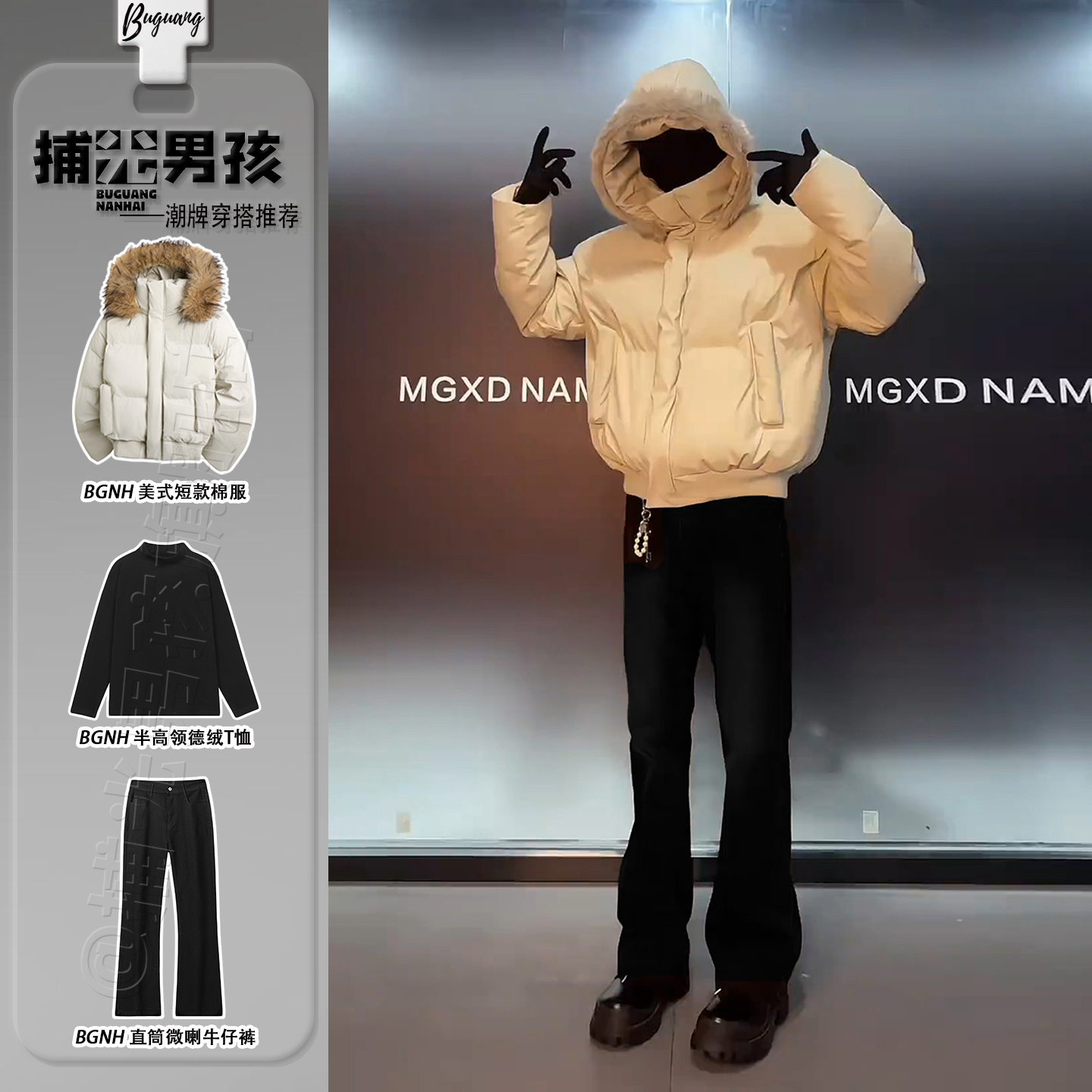 NEVERNEED短款座山雕毛领连帽棉衣美式复古cleanfit解构外套棉服