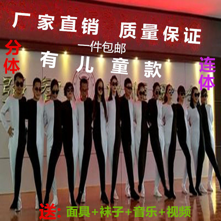 黑白腿舞蹈服演出服装视觉错觉连体裤男装俄罗斯年会搞怪搞笑服装