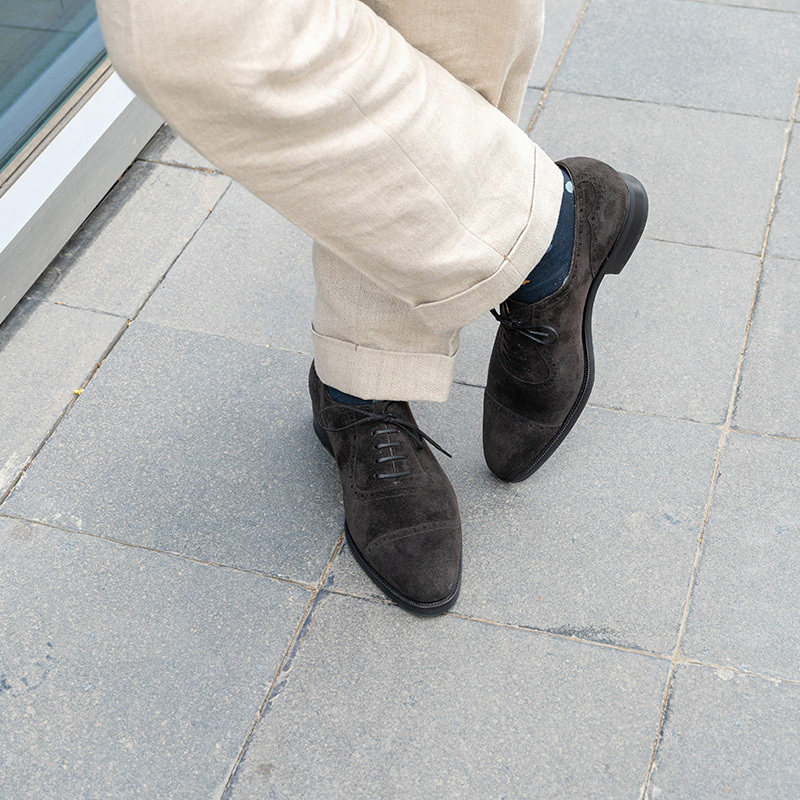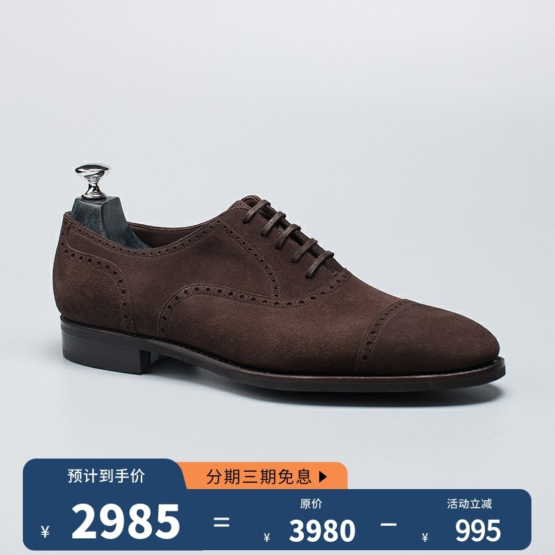 美勋代理 西班牙TLB手工固特异皮鞋深棕翻毛牛津鞋男商务正装休闲