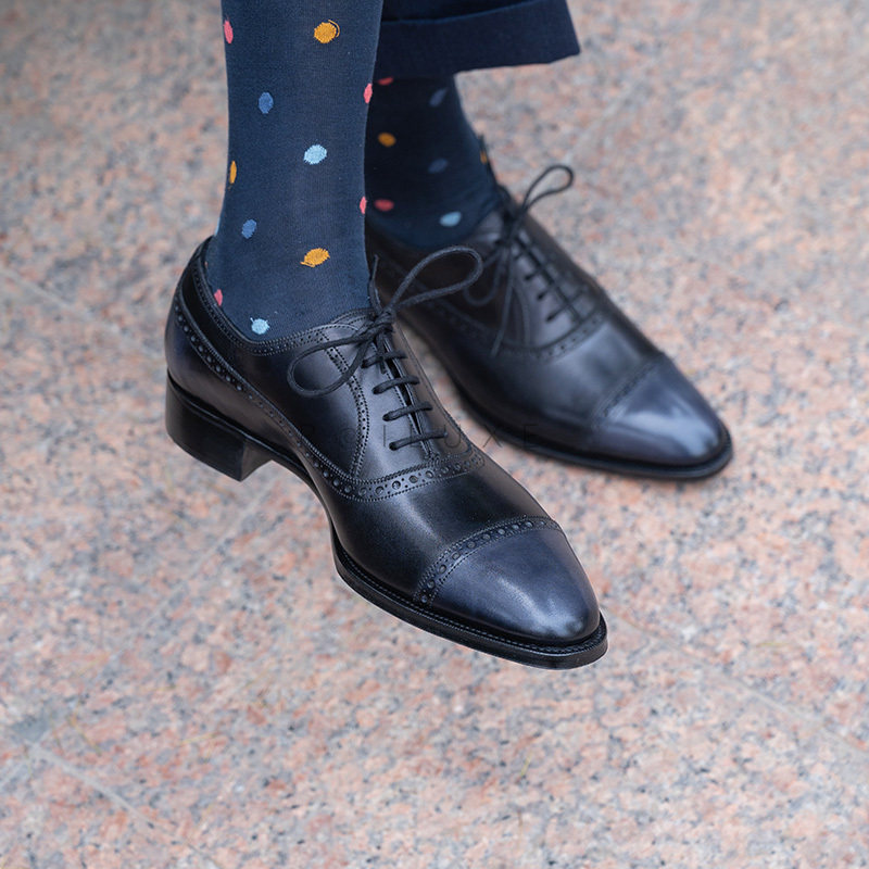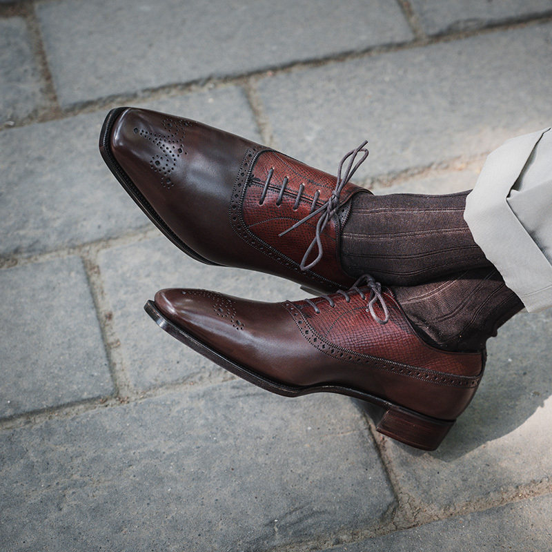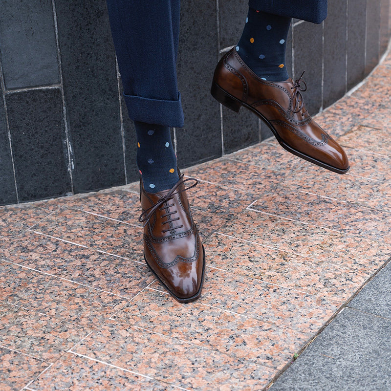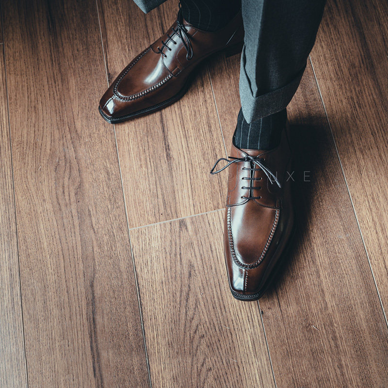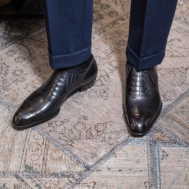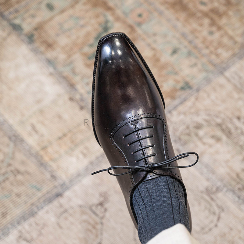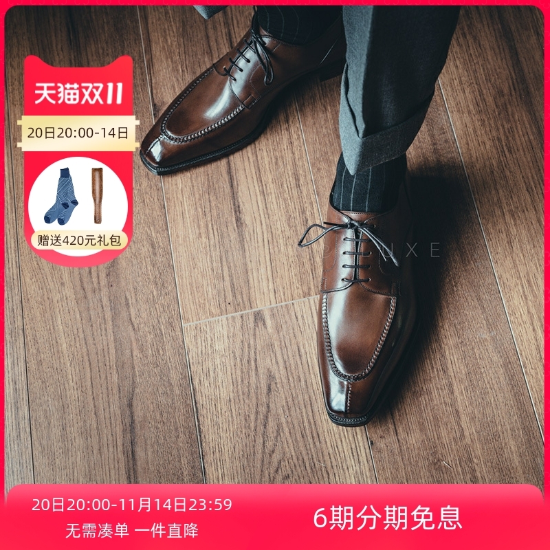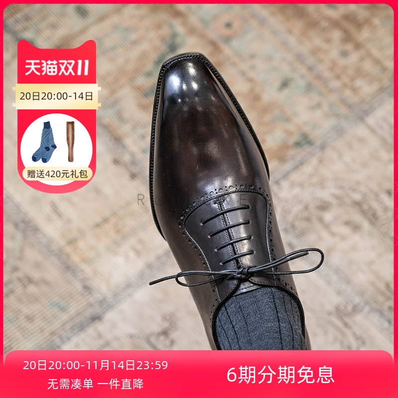 Oct Tenth手工固特异皮鞋 手缝沿条擦色布洛克Oxford方头牛津鞋男