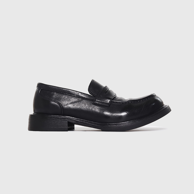 SELVMAKE水洗马皮老钱雅痞尖头乐福鞋男固特异皮鞋翘头通勤德比鞋