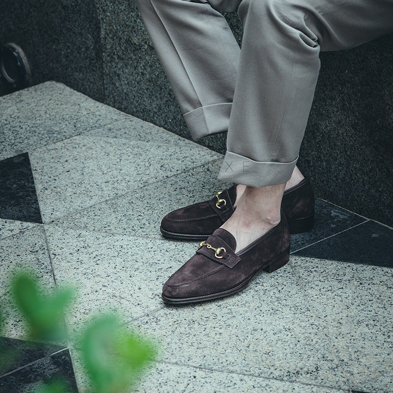英国George Cleverley固特异皮鞋 马衔扣鹿皮手工乐福鞋男 Loafer