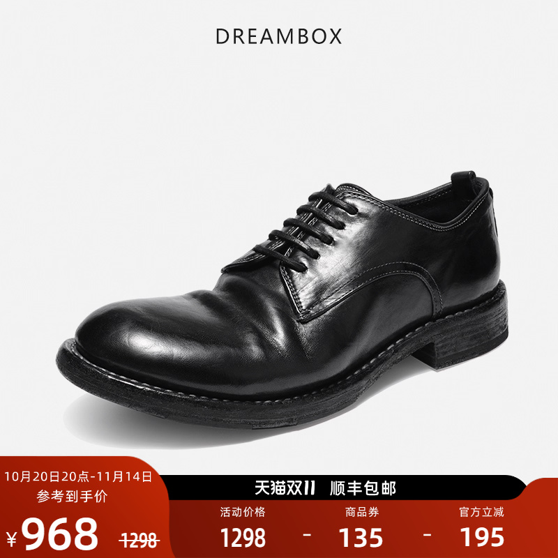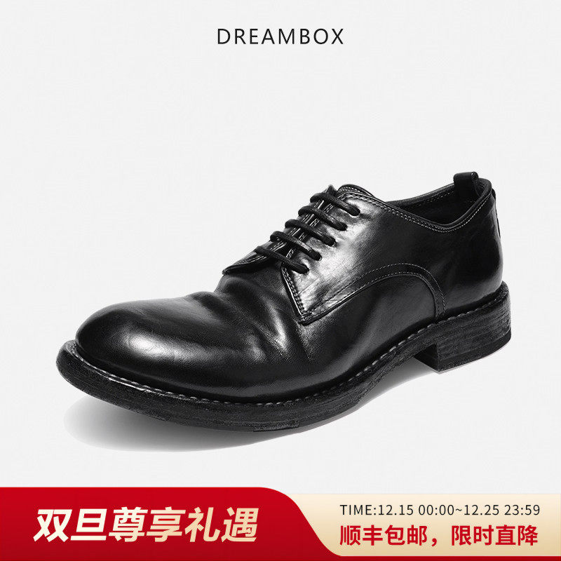 dreambox钧博vibram高端马臀皮休闲皮鞋手工固特异皮底男士德比鞋