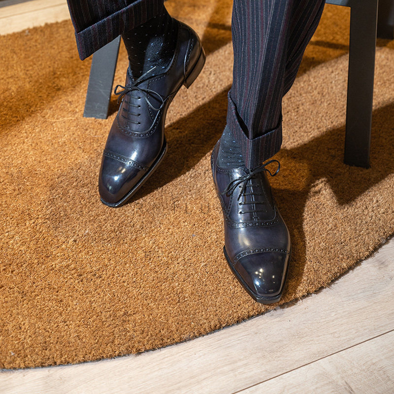 Oct Tenth手工固特异皮鞋 手缝沿条工艺灰擦色布洛克Oxford牛津鞋