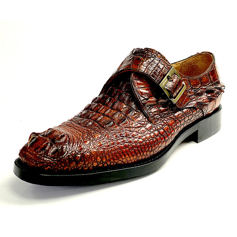 鳄鱼皮男鞋纯手工擦色国际大牌复古工艺固特异皮鞋一脚蹬套脚鞋子