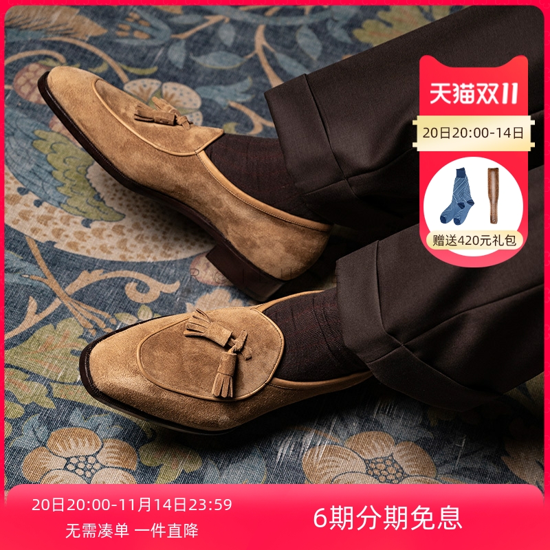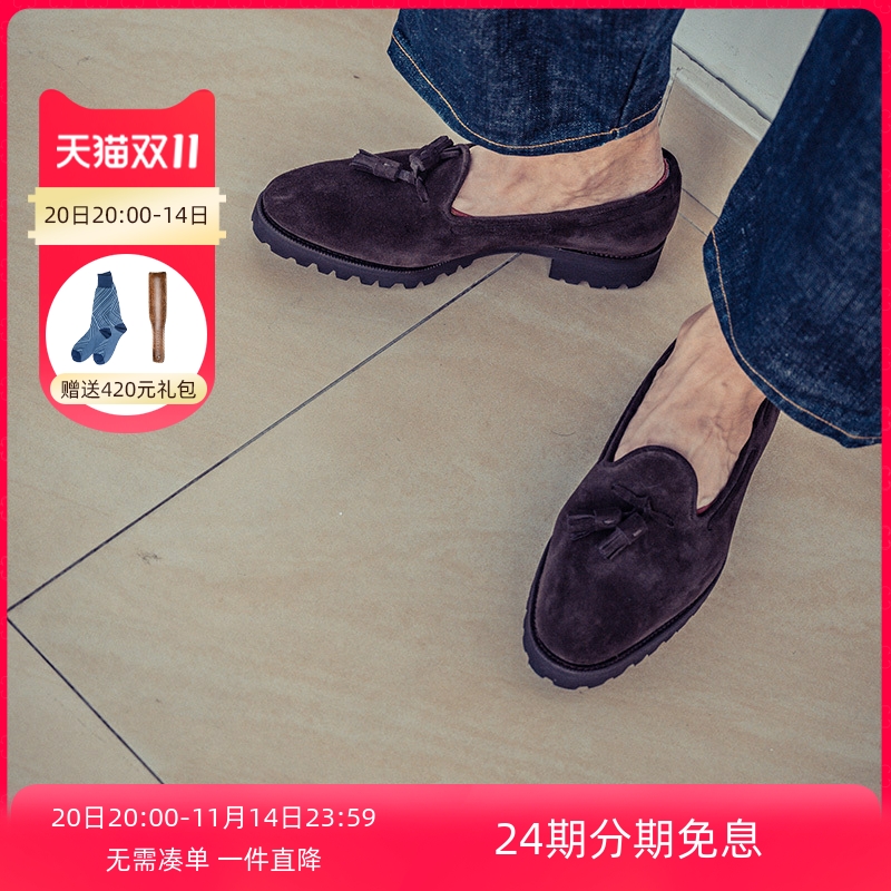 国货之光Oct Tenth手工固特异皮鞋 牛反绒Loafer流苏乐福休闲鞋男