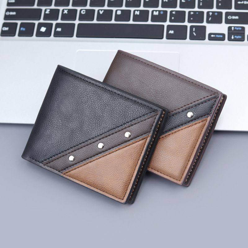 新品 男士钱包短款拼接带拉链三折男式钱夹多卡位男款皮夹大容量
