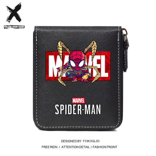 漫威复联周边蜘蛛侠欧美个性潮牌联名青年学生短款钱包男生带拉链