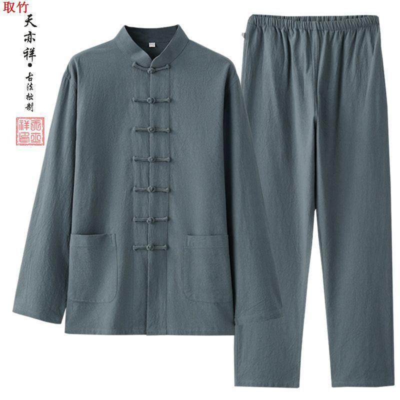 中国风唐装男士长袖外套套装中老年青年春秋休闲汉服盘扣居士服男