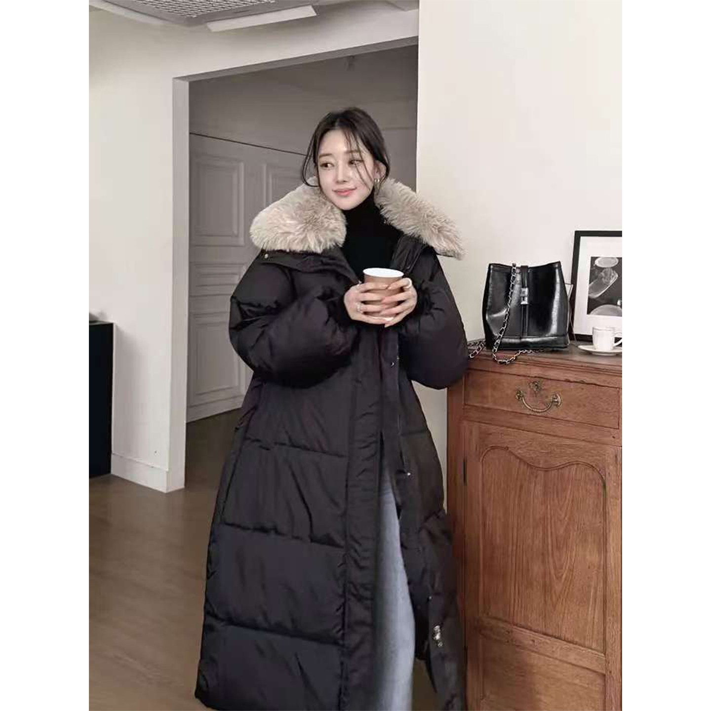 - 韩版中长款过膝棉衣女