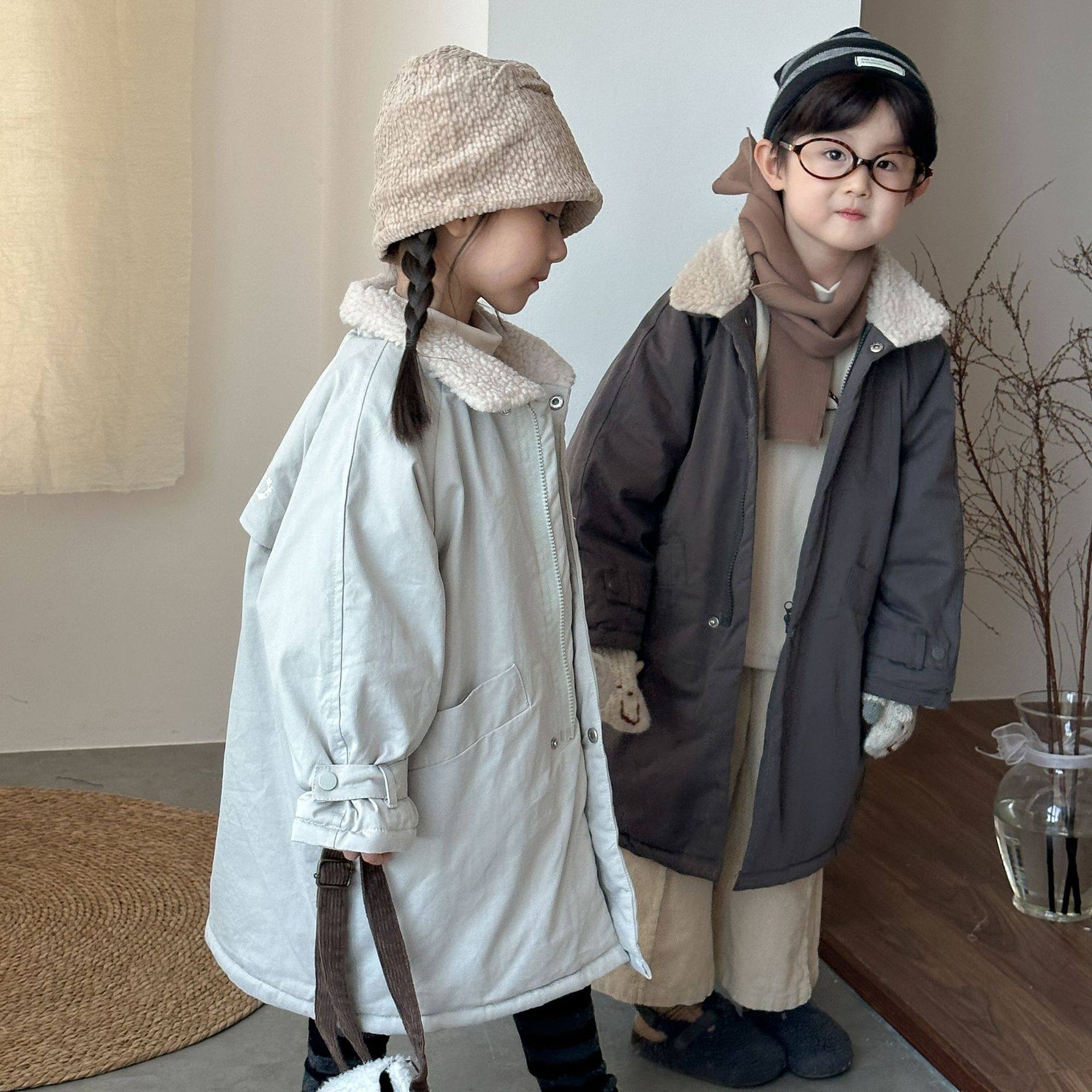 儿童棉衣中长款加绒加厚风衣男童装冬季女童棉服2025新款宝宝棉袄