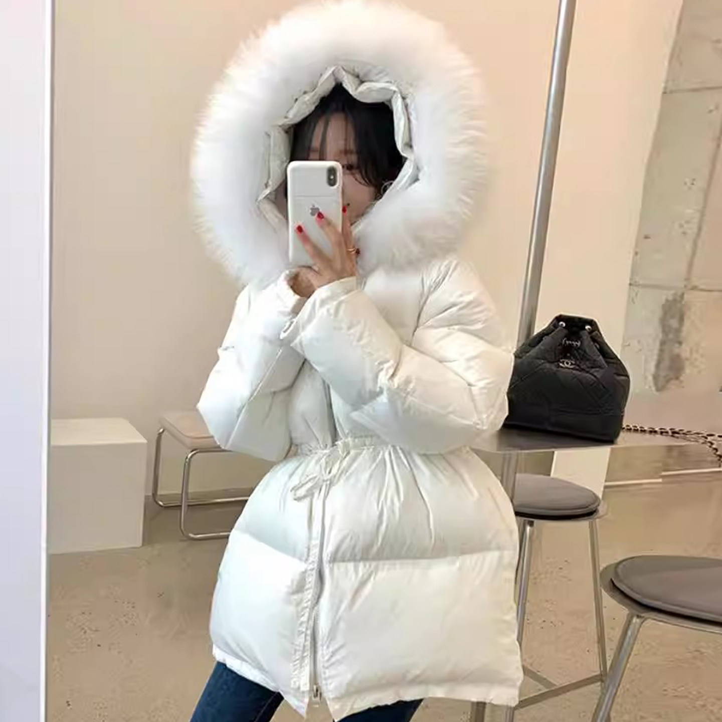 原单韩国单女装羽绒服鹅绒女加厚保暖中长款后腰设计时尚鹅毛棉衣