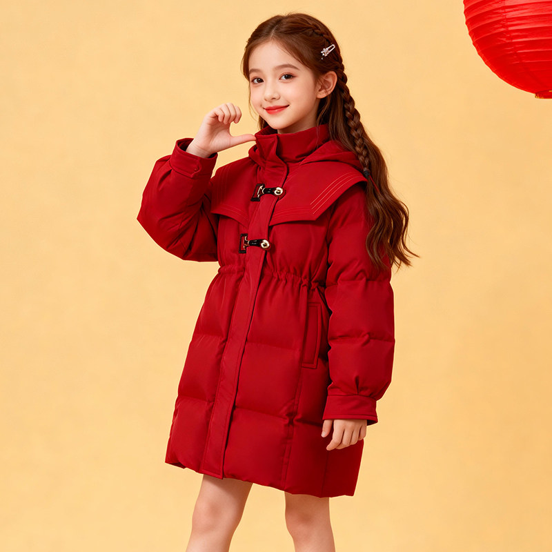 阿尼卡ANIKA2025冬新款女童羽绒服中大童中长款90白鸭绒棉衣外套