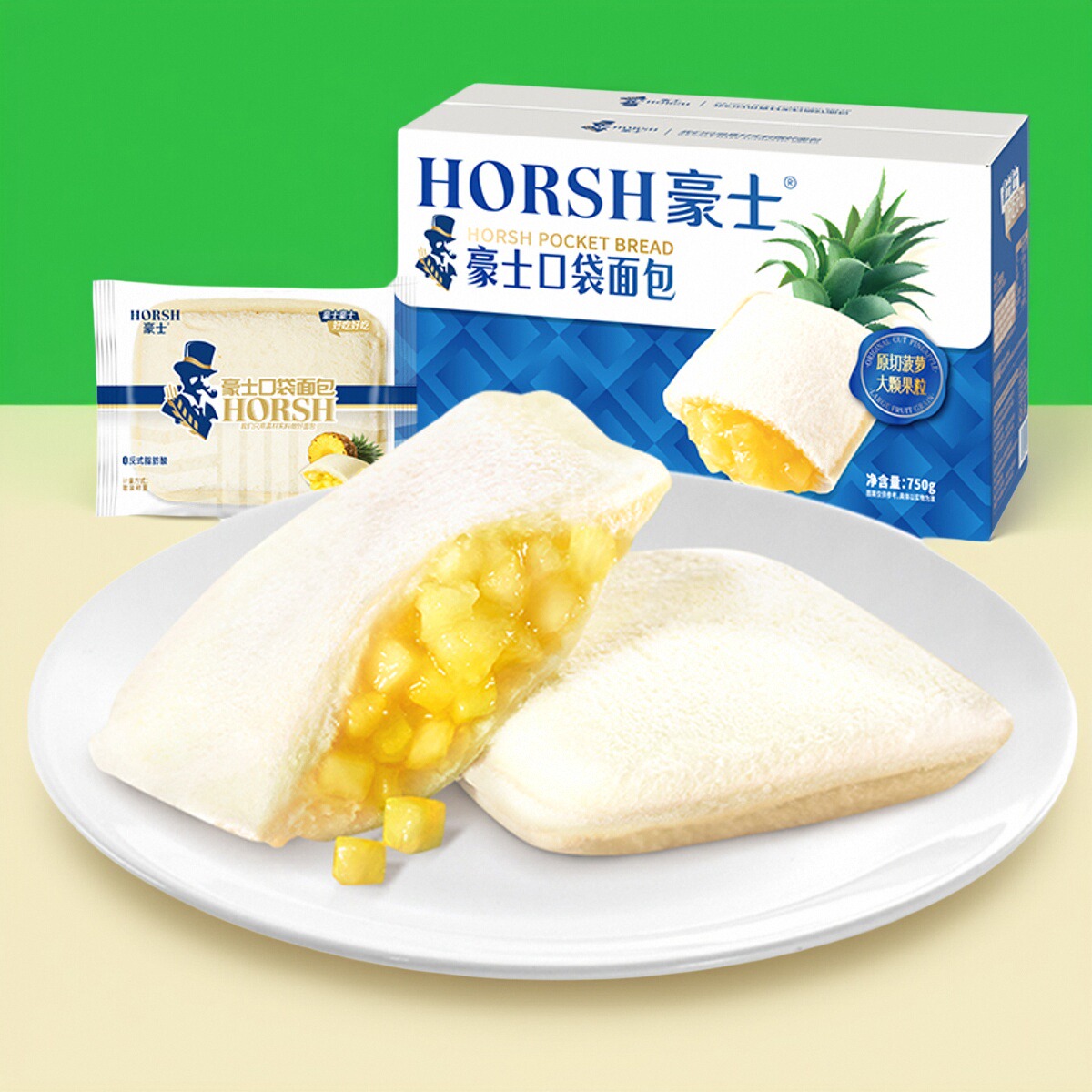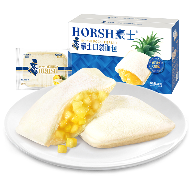 豪士菠萝口袋面包750g大颗粒菠萝夹心早餐代餐糕点休闲零食整箱