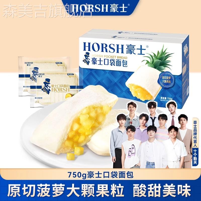 豪士菠萝夹心小口袋面包三明治网红早餐休闲小吃零食品整箱旗舰店