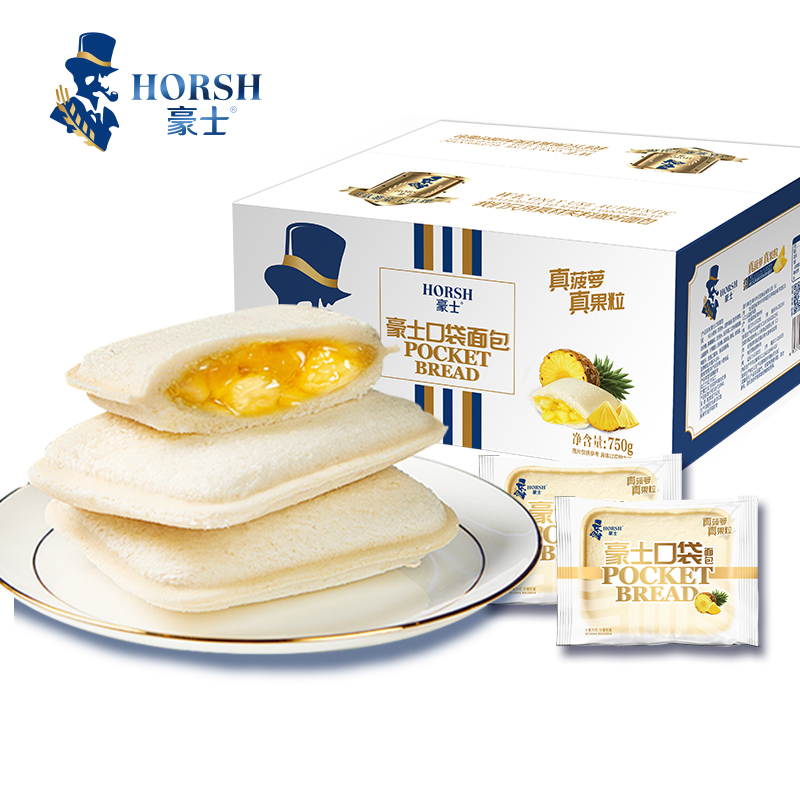 豪士菠萝夹心口袋果粒吐司健康早餐速食代餐蛋糕面包零食750g*2箱