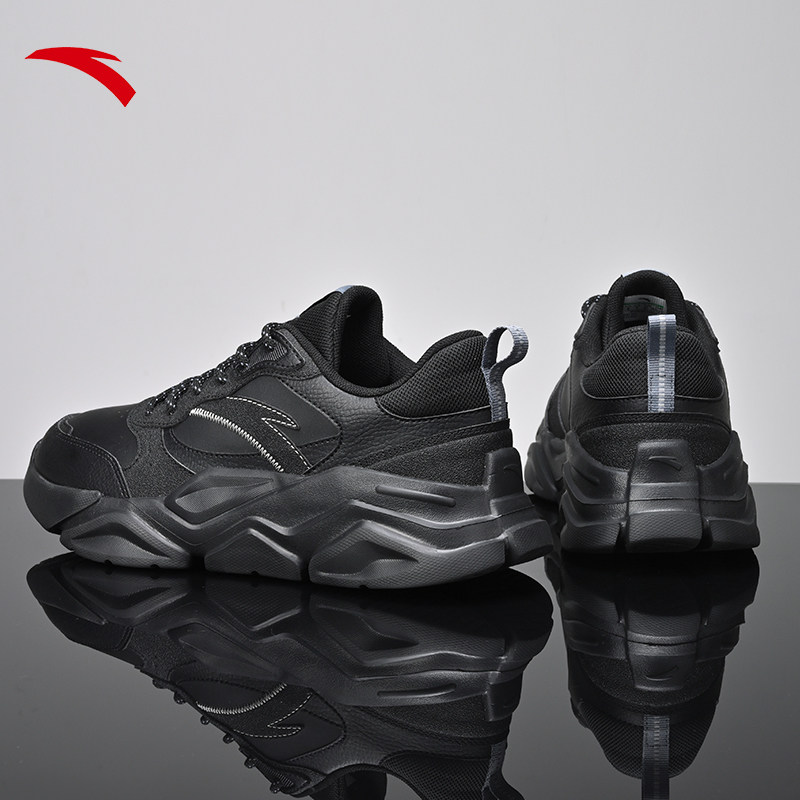 安踏老爹运动男鞋冬季新款皮面防水运动鞋增高休闲鞋黑色复古鞋子
