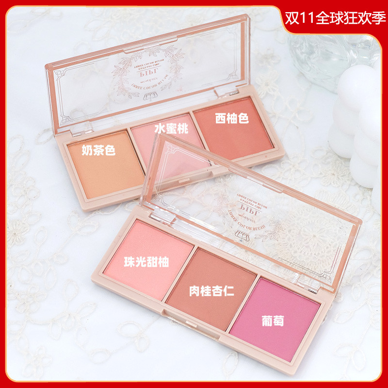 梦幻女孩三色腮红 持久自然裸妆哑光奶茶色胭脂橘色平价学生正品
