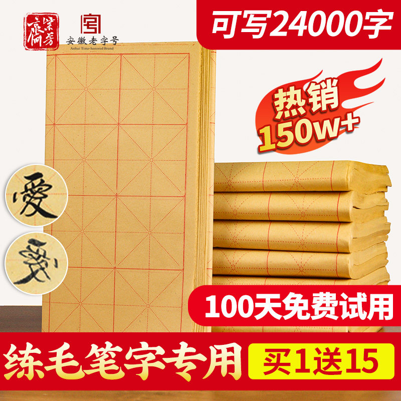 曹一阁毛边纸书法专用纸米字格宣纸练字书法毛笔字练习纸批发带格子手工元书纸半生半熟纸初学者书法练习用纸