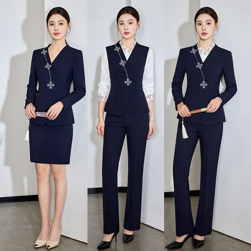 2025年酒店前台工作服女餐厅服务员收银员工装职业装西服正装