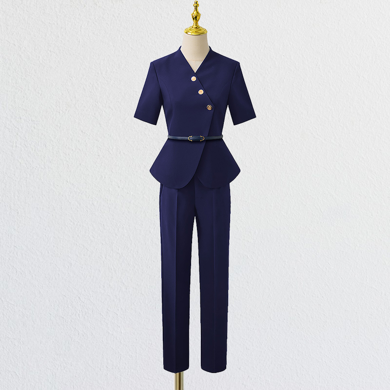 诗璐雅V领西装套装2025新款时尚修身美容院酒店前台工作服女夏天