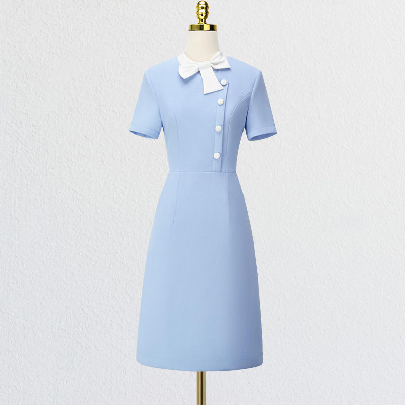 天蓝色短袖职业连衣裙夏季新款气质美容院医美工装裙前台工作服女