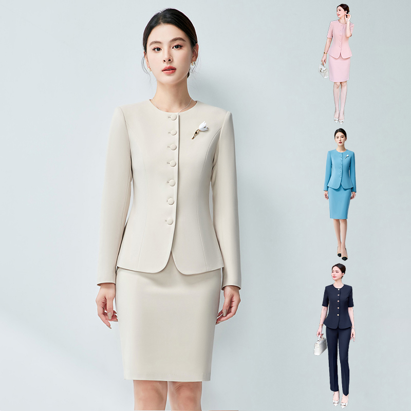 职业装西装连衣裙套装春秋款气质美容院珠宝店工装裙前台工作服女