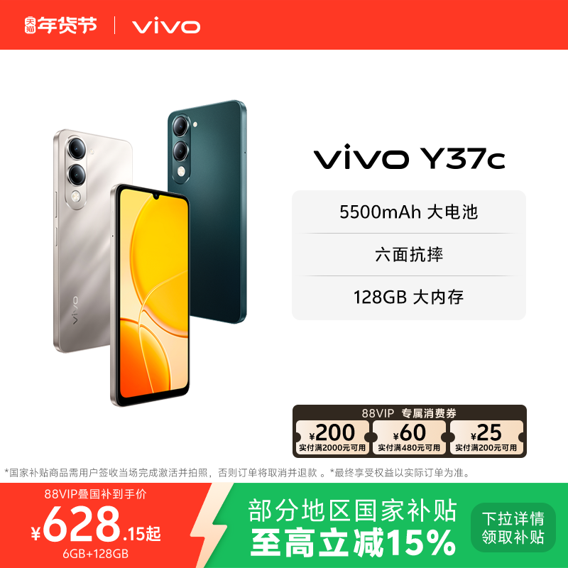 【国家补贴至高立省15%】vivo Y37c 新品智能拍照手机大内存大电池长续航vivo官方旗舰店正品