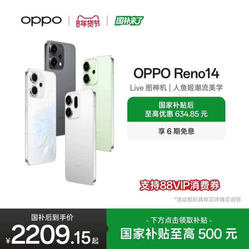 OPPO Reno14 AI智能手机学生拍照国家补贴手机高清长焦实况照片 IP69 满级防水oppo官方旗舰店