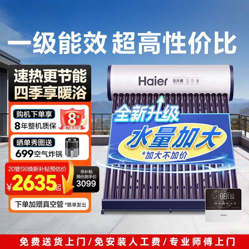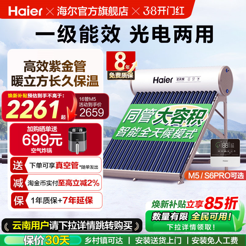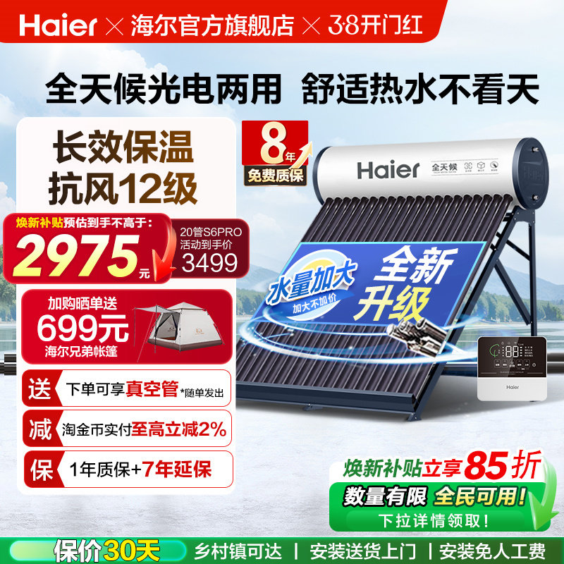 海尔太阳能热水器家用保温电加热真空管光电两用一体机S6PRO