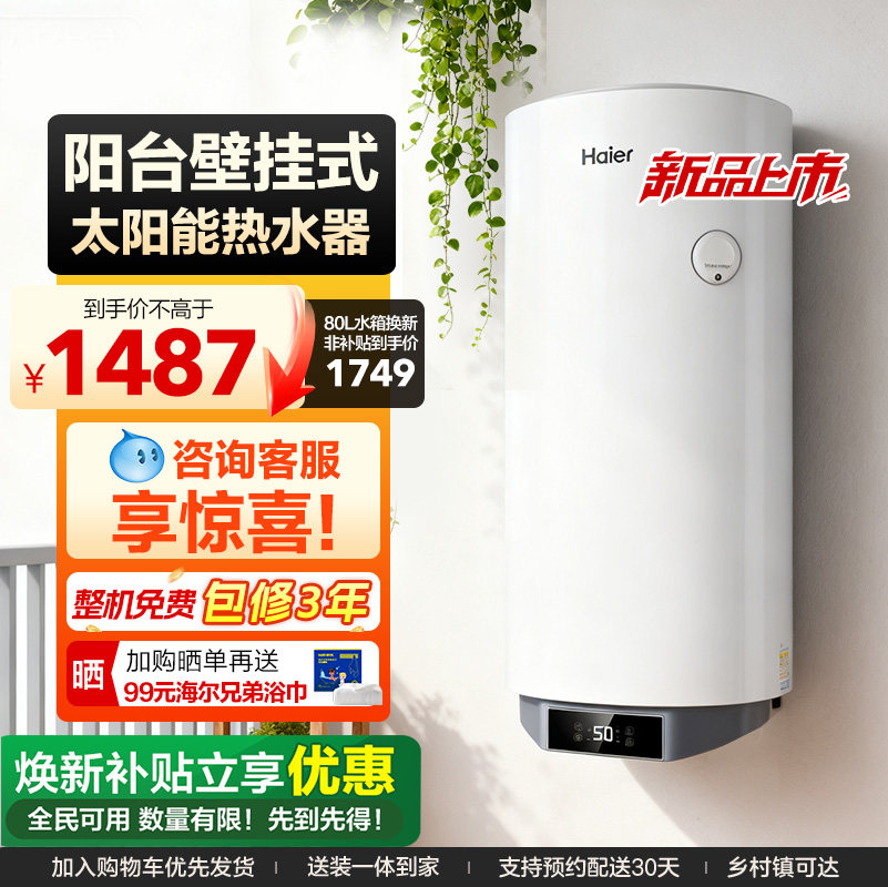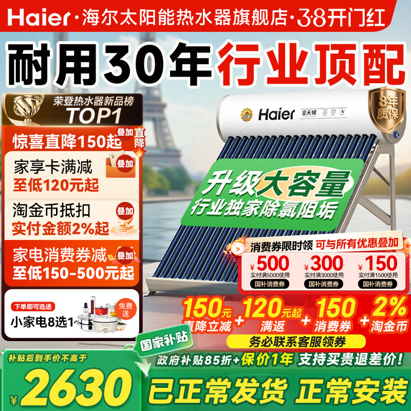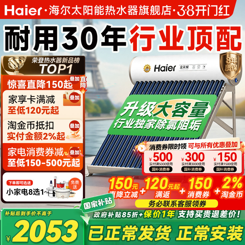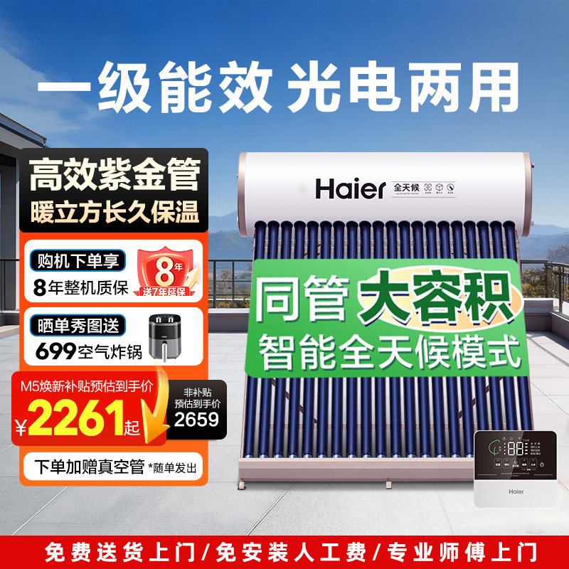 政府补贴15%】海尔出品统帅2025新款太阳能热水器电加热一体家用