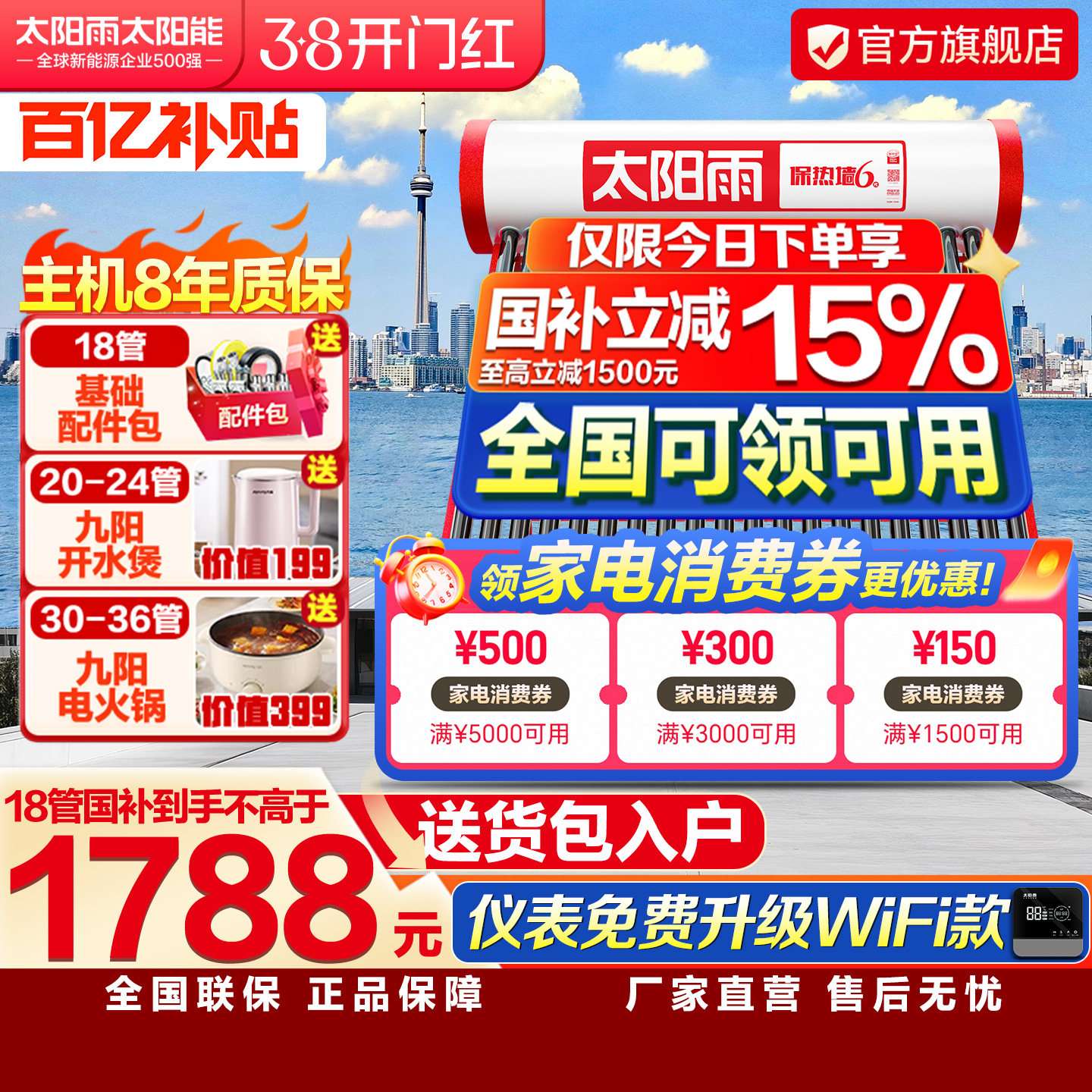太阳雨太阳能热水器家用升级保热墙加厚支架可选电加热全自动上水