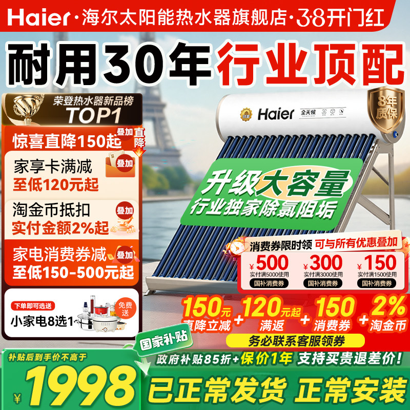 【政府补贴15%】海尔太阳能热水器电加热一体家用集热器十大品牌