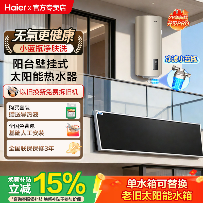 海尔小蓝瓶壁挂式太阳能热水器家用阳台平板集热光电两用KT6Pro