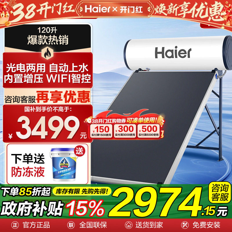 海尔太阳能热水器家用一体式节能自动上水150升120L光电两用PD3