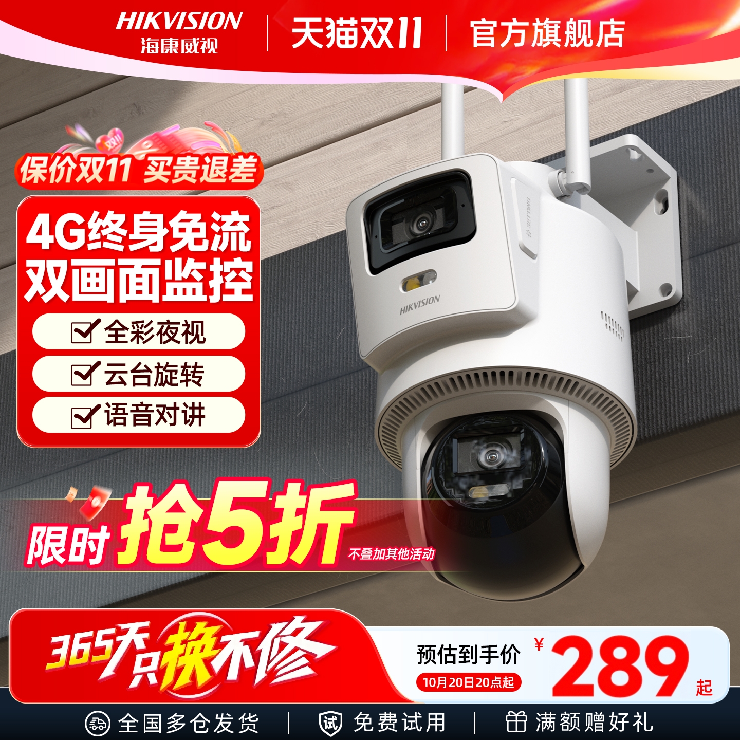 海康威视监控摄像头4G家用远程全景双摄摄像头360度终身免流量